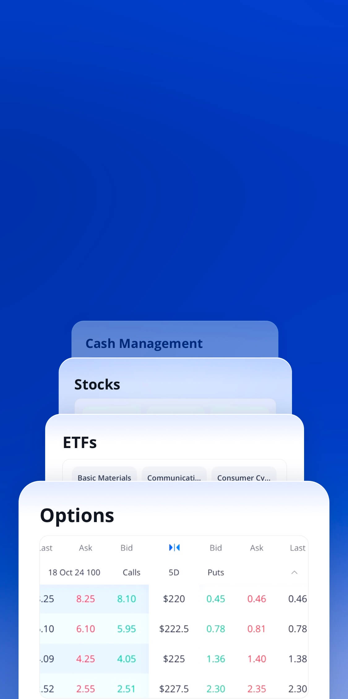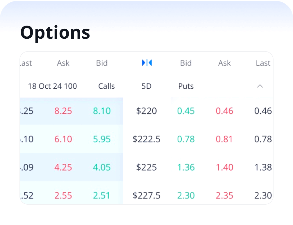 Low fees and commissions for stock and ETF options with just $0.99 per contract on index options. Analyze risk and design strategies effortlessly using our user-friendly options chain.